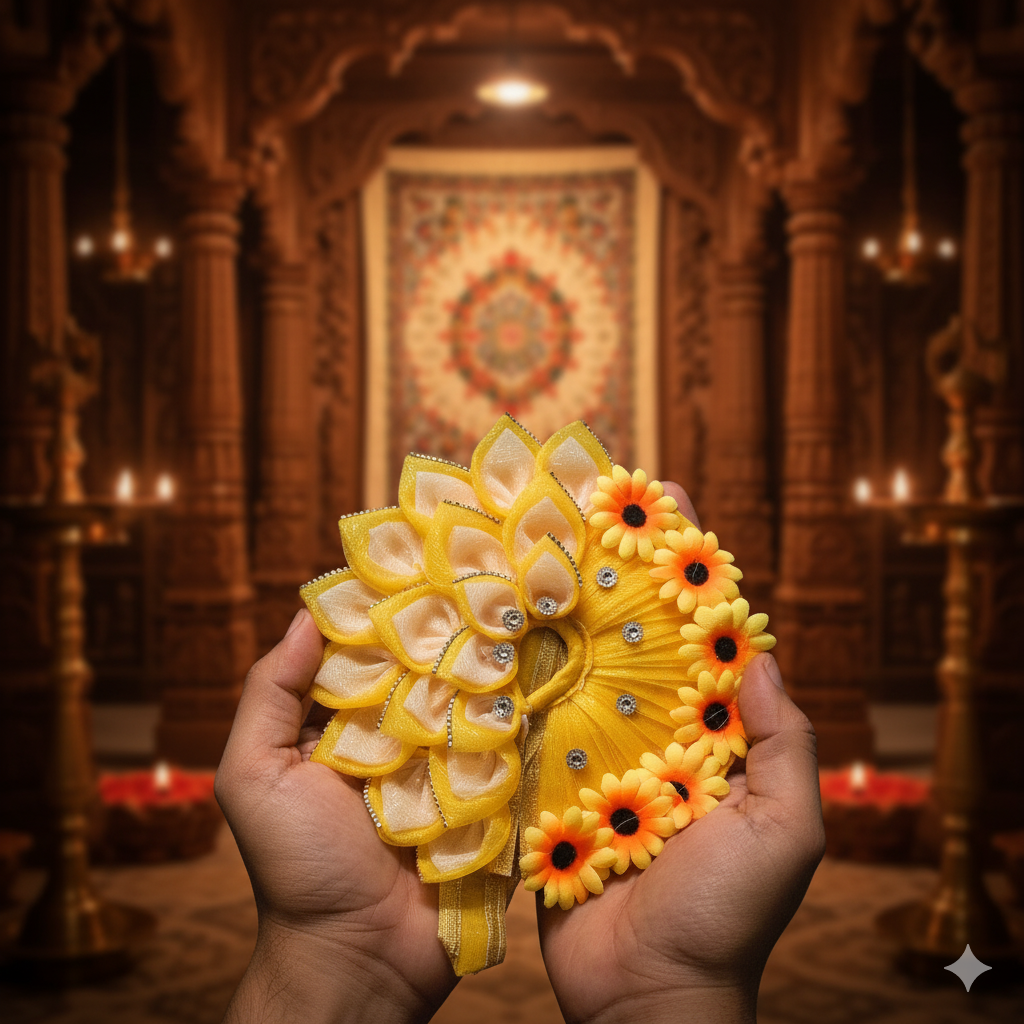This attire is as bright and attractive as the Sunflower (Suryamukhi). The yellow color symbolizes knowledge, joy, and auspiciousness, lending a divine splendor to Laddu Gopal's Shringar (Adornment).