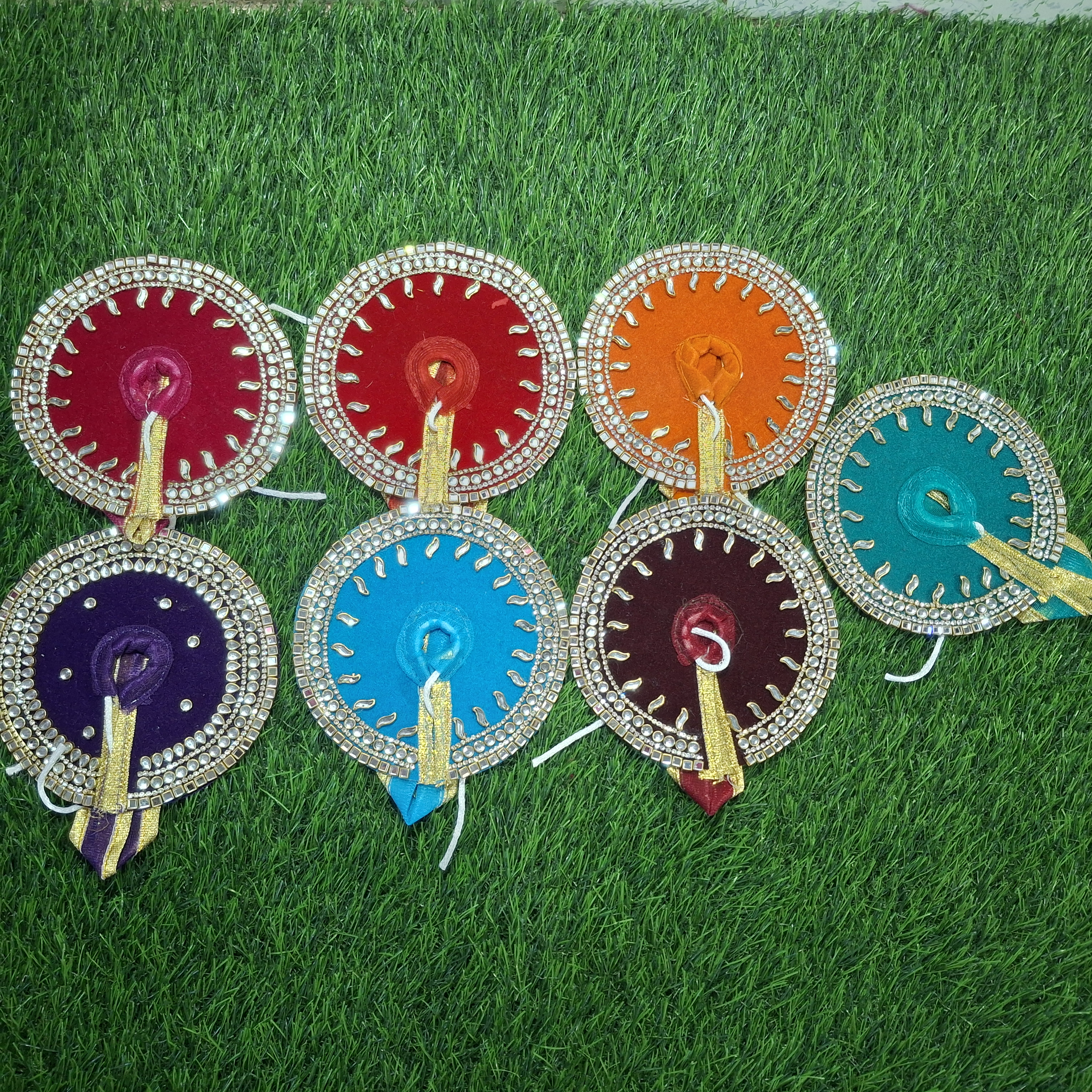 Adorn your beloved Laddu Gopal with this Royal Maroon Vastra Set, featuring a majestic circular backdrop richly decorated with kundan work, golden embroidery, and leaf motifs. The deep maroon velvet fabric paired with shimmering gold borders offers a regal look that enhances every divine moment.